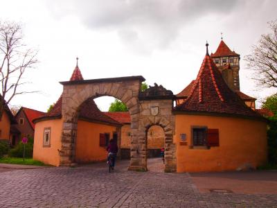 ローテンブルク駅から少し歩いた所の、AnsbacherStrasseを旧市街方面へ歩いていくと、10分もしないうちに、この門に到達します。 この門をくぐった城壁の中が、旧市街。 そのまままっすぐ進むと、旧市街の中心に出ます。