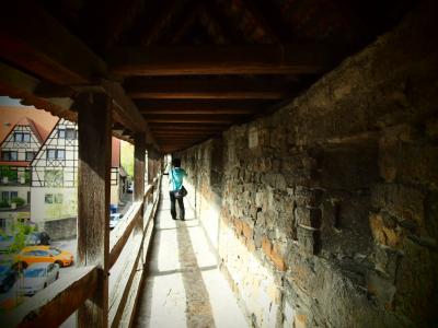 城壁に囲まれた街、ローテンブルク。 城壁の所々に急な階段があり、旧市街を囲む城壁を歩くことが出来ます。