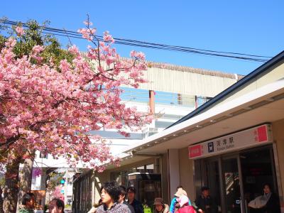 静岡の河津桜を見に行った時に利用した駅です。 高架になっている線路上からも、河津桜を楽しむことが出来ます。 河津桜が見頃の時期は、平日でもかなりの混雑でしたので、満開の時期と週末が重なったら一体どうなってしまうんだろう?!って感じです。