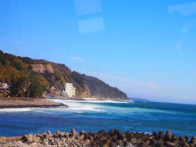 河津桜を見に行った時、熱海から乗り換えた電車です。 黒船電車は伊豆急の電車ですが、JR伊東線にも乗り入れているので、熱海⇔河津の約1時間、とっても楽しい鈍行電車の旅が出来ました!