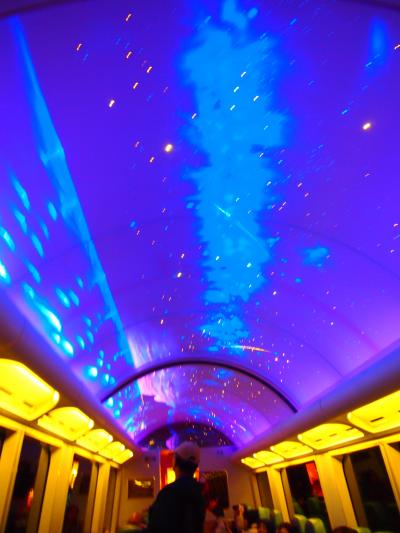 黒い車体がカッコ良く、ペリーの黒船をイメージしたカラーリングになっているようです。 車体の色だけではなくて、一両ごとにコンセプトが違うので、車窓からの景色(海がとってもキレイ!)だけじゃなくて、電車自体も楽しめるのが嬉しいです。 私は帰りも偶然この黒船電車に乗ったのですが、行きと違う車両に乗ったら、作りが違って驚きました。 行きは、ペリー来航の歴史など、当時の記事が壁にプリントされていて、幕末の時代を楽しめる感じ、帰りは、プラネタリウム仕様で、トンネルに入ると天井に星空や天の川が映し出されて、何も知らなかった乗客から、歓声が上がりました!