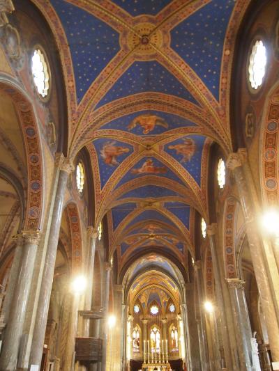 祭壇は照明がついてたけど、天井に関しては、両側のステンドグラスからの日の光で照らされてブルーがキレイに見えるようです。 お天気の悪い日はあまりブルーはキレイに見えません。- 旅行時期