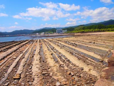 「鬼の洗濯板」は、長い間波に洗われ、固い砂岩層だけが板のように積み重なって出来たとのこと。 自然現象ってスゴイ!と本当に実感できる場所です。