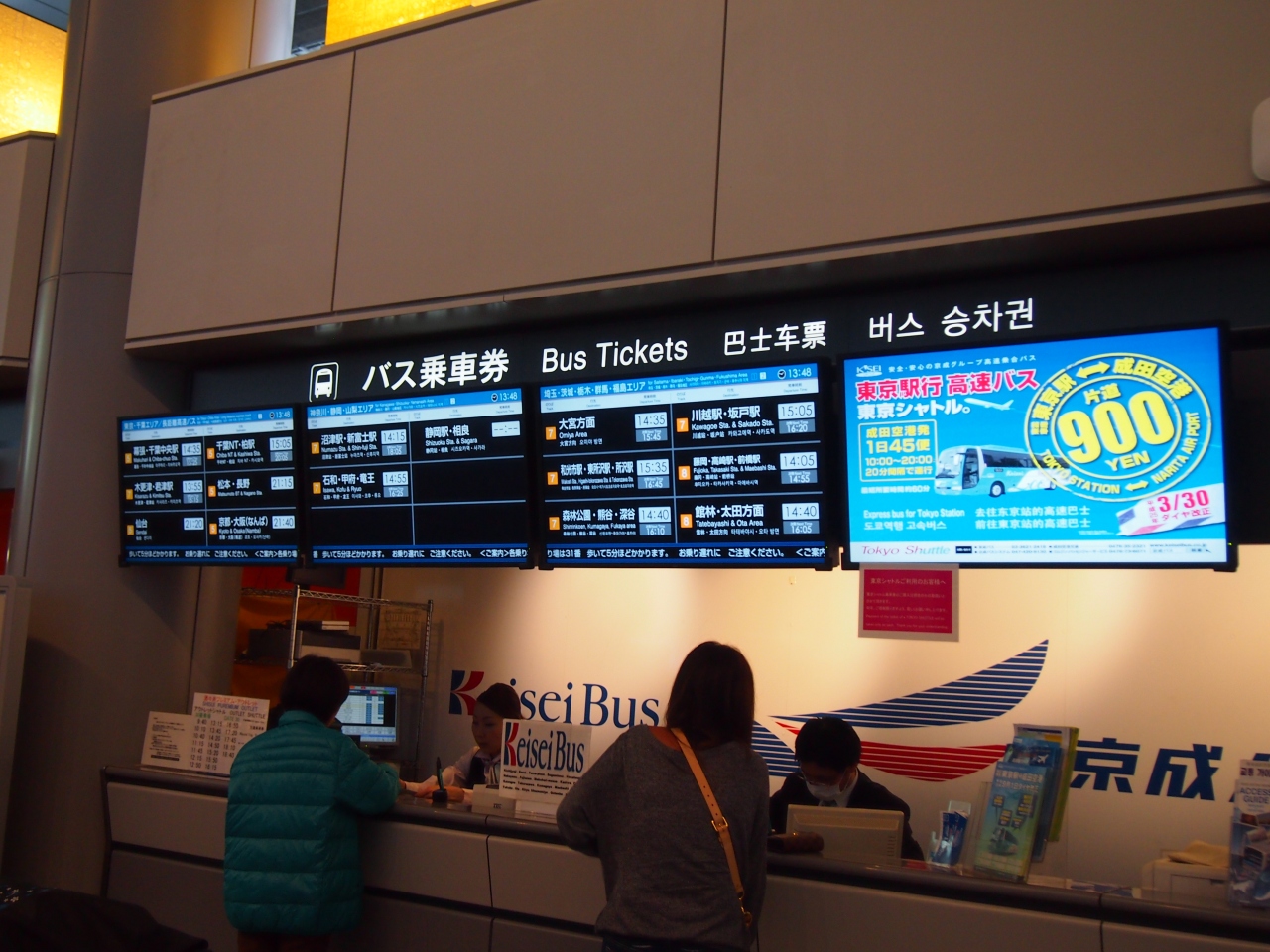 成田空港第一ターミナルからの乗り場は、もう1社(平和交通のTHE アクセス成田)の格安バスと同じ、31番で、1番端っこです。 この東京シャトルを利用する場合は、事前に空港の京成バスカウンターでチケットを購入する必要があるのでご注意ください。 知らなかったので、チケットを買わずに乗り場に直接行ったら、戻ってチケットを買ってから次のバスへのご案内になります…と言われてしまいましたので。