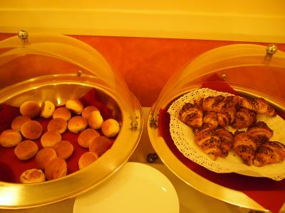 朝食を食べる場所は地下ですが、テーブルは4つしかありませんでした。 シーズンオフに旅行したので、空いてましたが、夏の混み合っている時は並ばないと食べられないのか、それとも部屋で食べるのも可能なのかは分かりません。 エレベーターは朝は大抵動いていませんでしたが、チェックイン時は大人2人+スーツケース2個も一気に乗る事が出来ました。