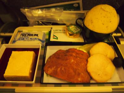 食事は、さすがイタリア系航空会社で、成田ローマ線は日本食orイタリアンで選べます。 イタリアンの味付けは良いのですが、パスタ、マカロニがちょっと乾燥しててパリパリだった^^; 帰りに食べた日本食は劇的にマズかったです。 ドリンクは、オレンジジュースが、真っ赤なブラッドオレンジジュースです。 食事以外の時間帯はセルフサービスで、トイレの近くにカウンターが設置されます。 途中、おやつの配布もありましたが、これもまたセルフサービスなので、寝ているともらえません^^;