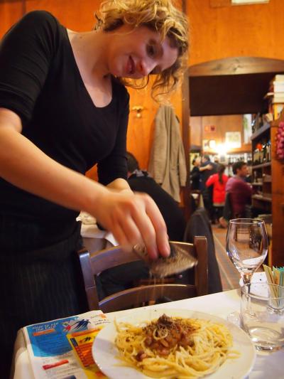 1番のオススメでもあった、トリュフのかかったカルボナーラは、私はもちろん、母親が本当に大絶賛でした! トリュフを豪快に目の前で削ってかけてくれるので、こぼれてしまってもったいないくらい!