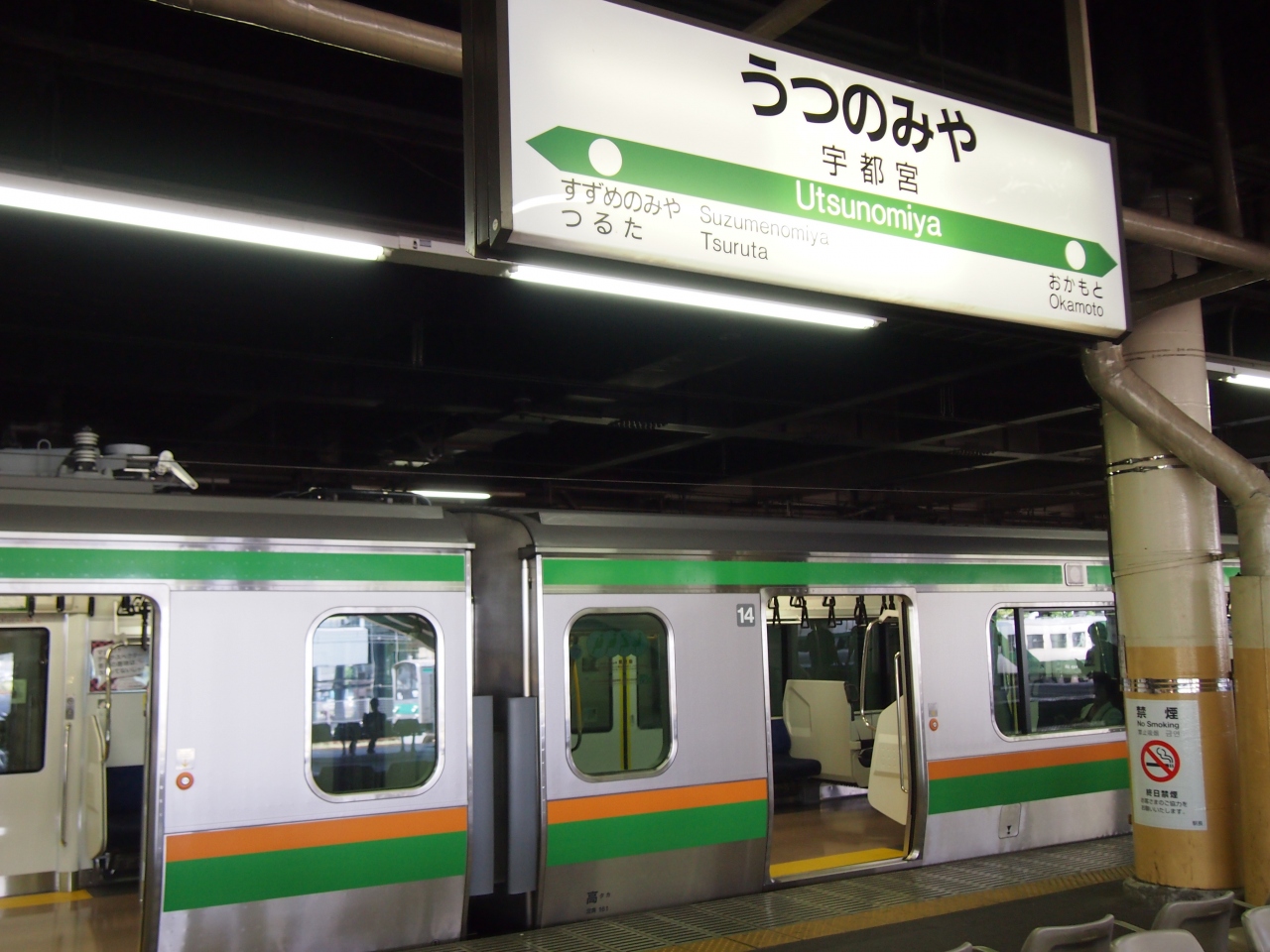 東京都内(宇都宮線の始発は上野駅)から電車に乗って来ると1時間半ほどで到着。 運賃は\1890円と結構高いので、青春18きっぷで2度も宇都宮に来てしまいました!