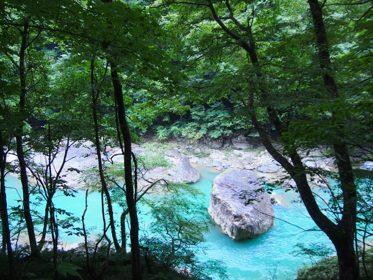 ガイドブックのキレイな写真(紅葉)を見て、是非1度行ってみたい!と思い計画。 私が訪れたのは紅葉の時期ではなかったのですが、自然がいっぱいでキレイなことには変わりないだろうと思ったので。 生憎のお天気だったのが残念でしたが、キレイな青緑色の水が流れる川を眺めることが出来て良かったです。 入口より徒歩30分くらいの場所にある、回顧(みかえり)の滝の迫力もかなりすごかったです! それ以外にも、回顧の滝に到着するまでの間に、神の岩橋や茣蓙の石、誓願橋など見どころがたくさんあります!