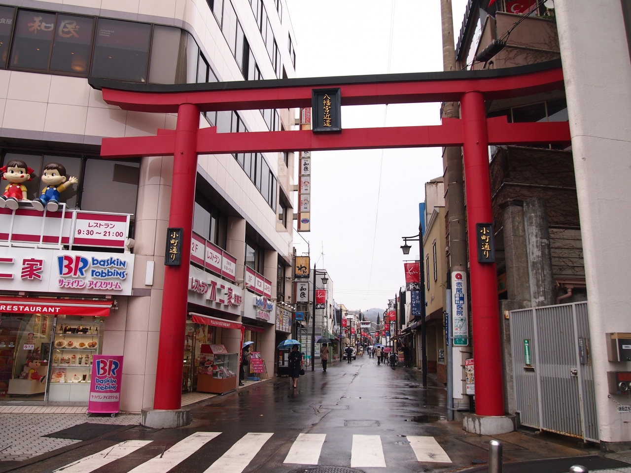 鎌倉駅からすぐ。 赤い鳥居が目印