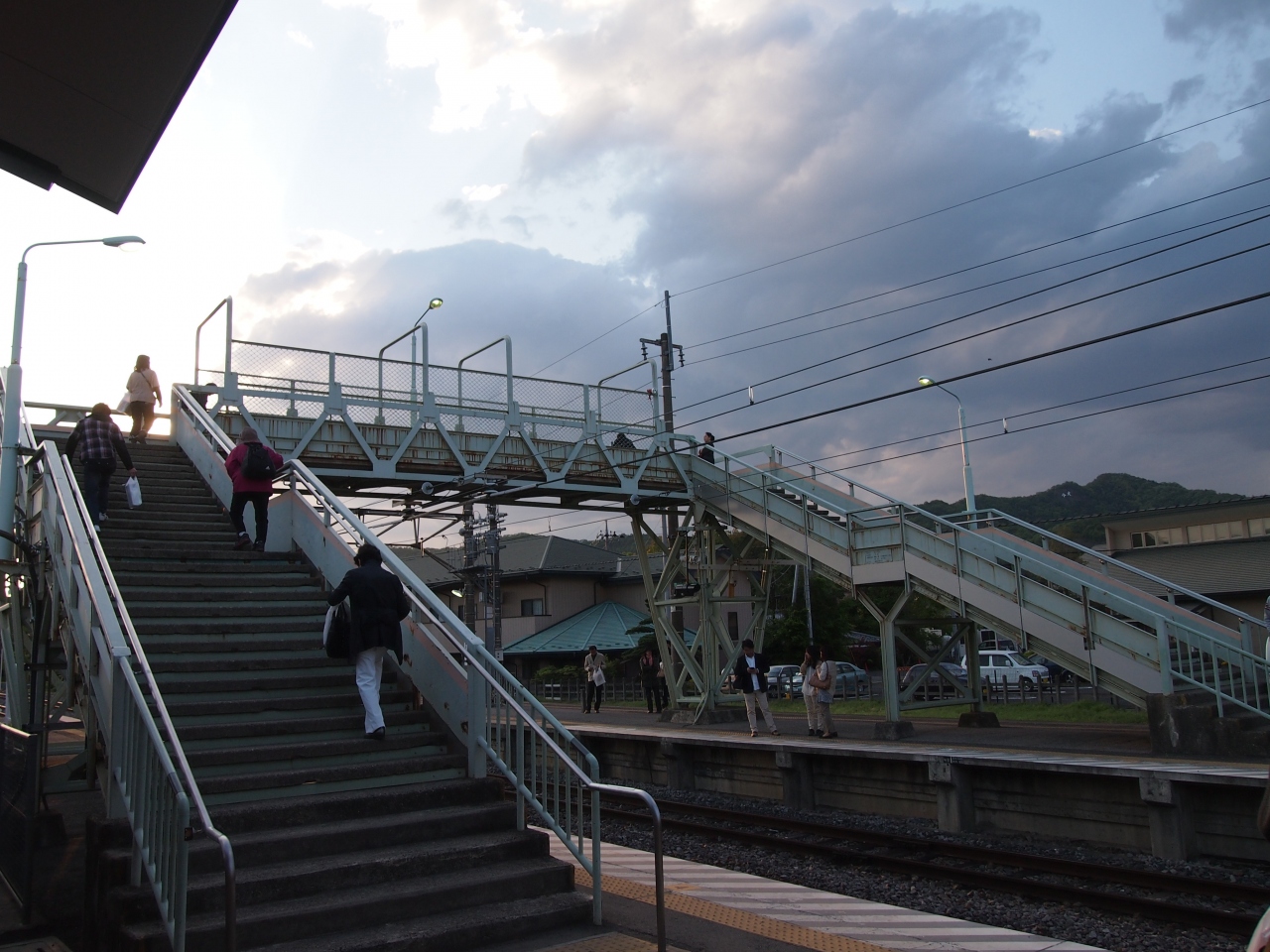 エレベーター未設置。 反対側のホームに渡るには、階段しかないです