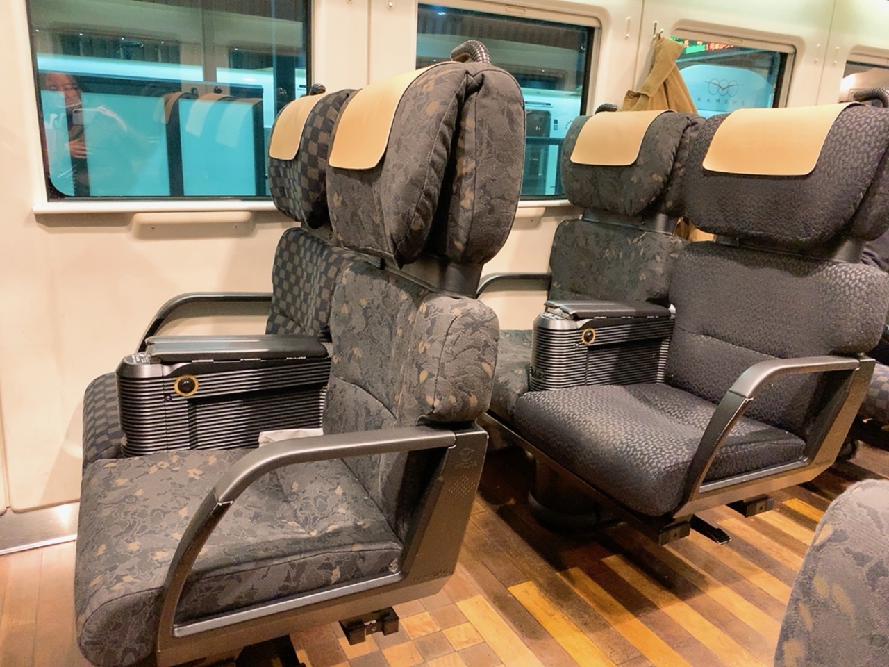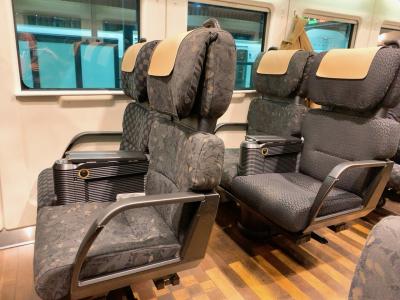 特急リレーかもめ自体は、座席も2x2席なので広く使えて快適ですが、在来線の線路を速く走るので、やっぱりかなり揺れますね。
