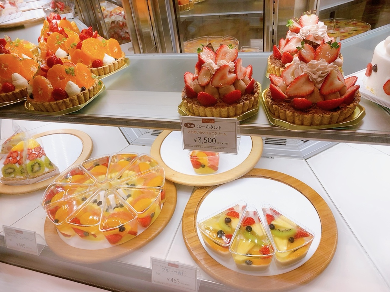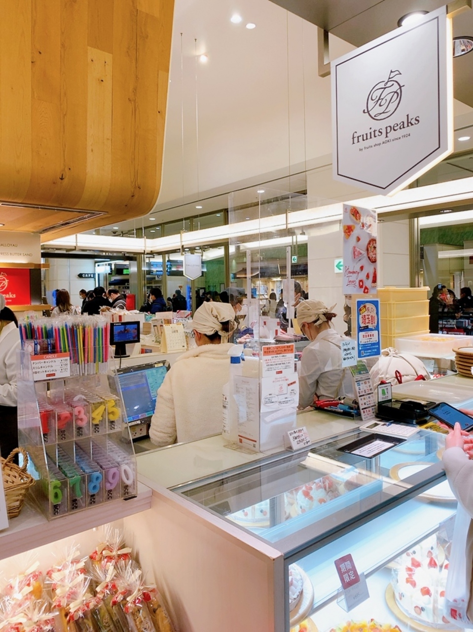 スイーツセクションが固まってあるエリアの分かりやすい場所に出店しています。 照明が明るく、フルーツもキラキラ輝いててますます美味しそうに見えるのが印象的でした。