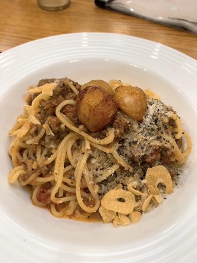 前回は、丸ごとガーリックを頂きましたが、翌々日でもほのかにガーリック臭がすると言われたので、今回はガーリックボロネーゼをチョイス。 なかなか美味しかったです。