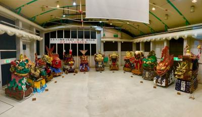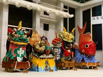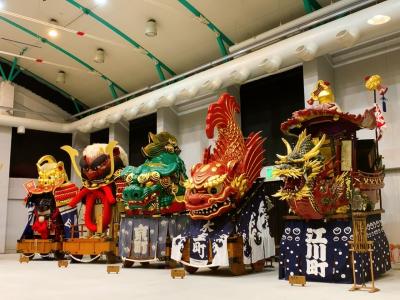 曳山と呼ばれる大きな山車が、祭りの時期を除いて保管展示されている曳山展示場が現在建て替え工事中という事で、駅前のふるさと会館アルピノに移されていました。