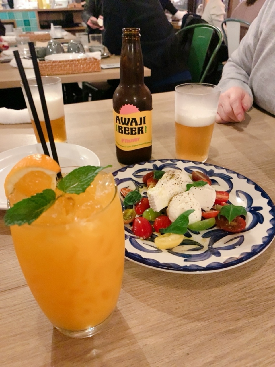 あわぢビール(ピルスナー)で乾杯して、吉田牧場のモッツァレラと大森さんのトマトのカプレーゼを一緒に注文してつまみながら時間を過ごしました。 自家製レモネードも美味しかった! マルゲリータピザもめっちゃ本格的で美味しかったし、パスタも2種類注文して、3人でシェアして頂きました。 本格的なピザ窯が、テーブル席から見えて、ピザ職人のテキパキした動きを見てるだけで楽しかったです!