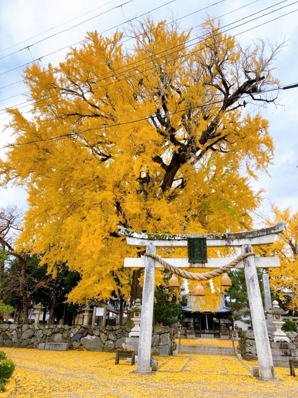 Google Mapで調べて行ったのですが、近くまで行ったら立派なイチョウの木ですぐ分かるほどの背の高い木が鳥居の裏にたっていました。