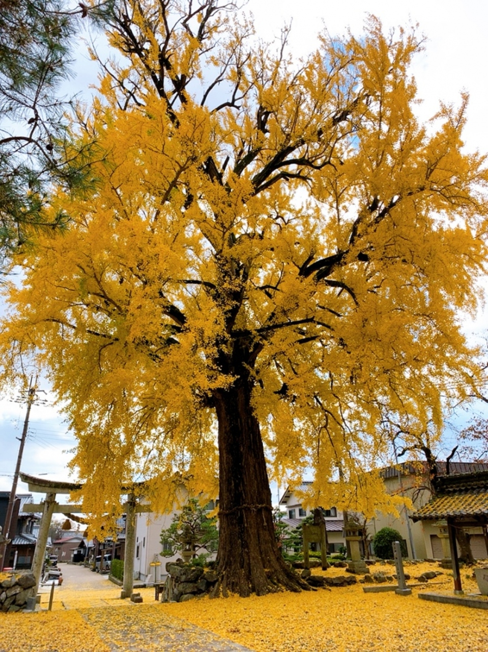 時期的にも本当にちょうど良く、イチョウの葉がキレイに落ちて、黄金の絨毯になってました。 でも、全ての葉が落ちちゃってるわけでもないので、立派なイチョウの木もまだまだ写真映えしました。- 旅行時期
