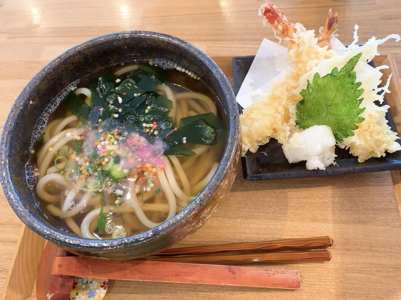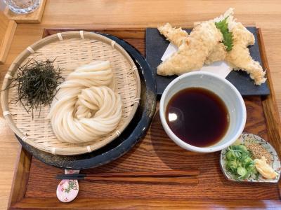母は大海老天のおうどん、私は国産かしわ天ざるうどんを注文。