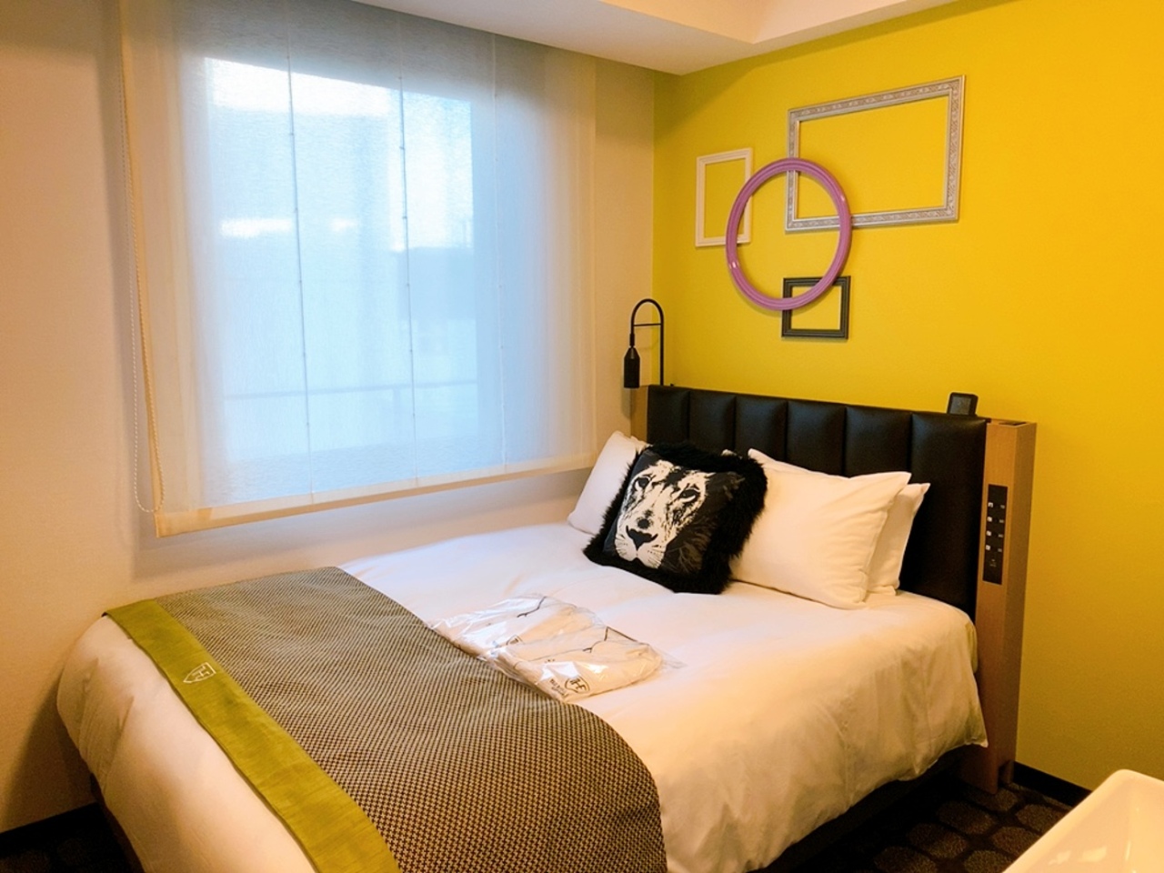 今回泊まったお部屋は、コンフォートダブルルーム。 大きくて快適なベッドに、リアルなライオンの顔が描かれたクッションが出迎えてくれます。 お部屋の壁もパステルカラーで明るい雰囲気でした。