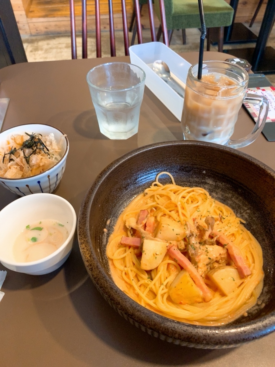 凛style系列のお店の基本メニューは同じなのですが、期間限定やそのお店限定のパスタは何種類かあります。 私は今回はじゃがいもとベーコンとまいたけのトマトクリームパスタを注文。 なかなかナイ組み合わせだなと思ったし、トマトクリームソースもなかなかおいしかったのですが、ブラックペッパー苦手で抜いて作ってもらったらちょっとパンチが足りない味がしたかな…(自分が悪いです)。 和風サラダと豆乳スープ、ドリンクの付くランチセット、追加でケーキも付く凛じろうセットがあります。 この日はケーキの気分ではなかったので、ランチセットにしましたが、アイスカフェラテがジョッキで出て来て驚きました!- 旅行時期