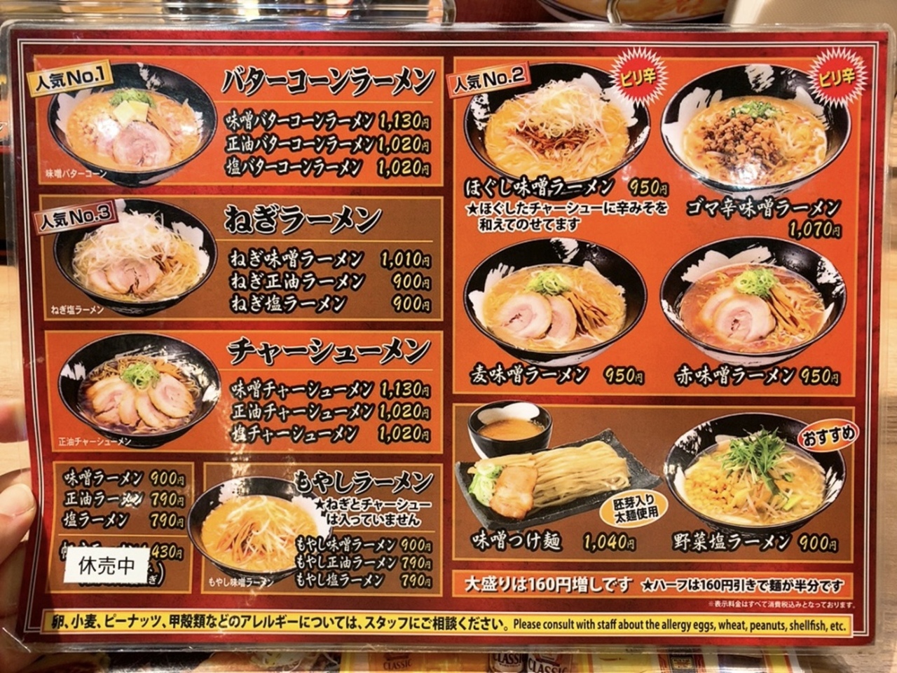 どのラーメンも、醤油・味噌・塩どの味でも作れるようで、味噌ラーメンが人気なのかな? でも私は朝食に塩ラーメンを食べたい!と決めて来たので、1番オーソドックスな塩ラーメンを注文。 雑味のない透き通った塩ラーメンのスープがめちゃくちゃ美味しかったです。- 旅行時期