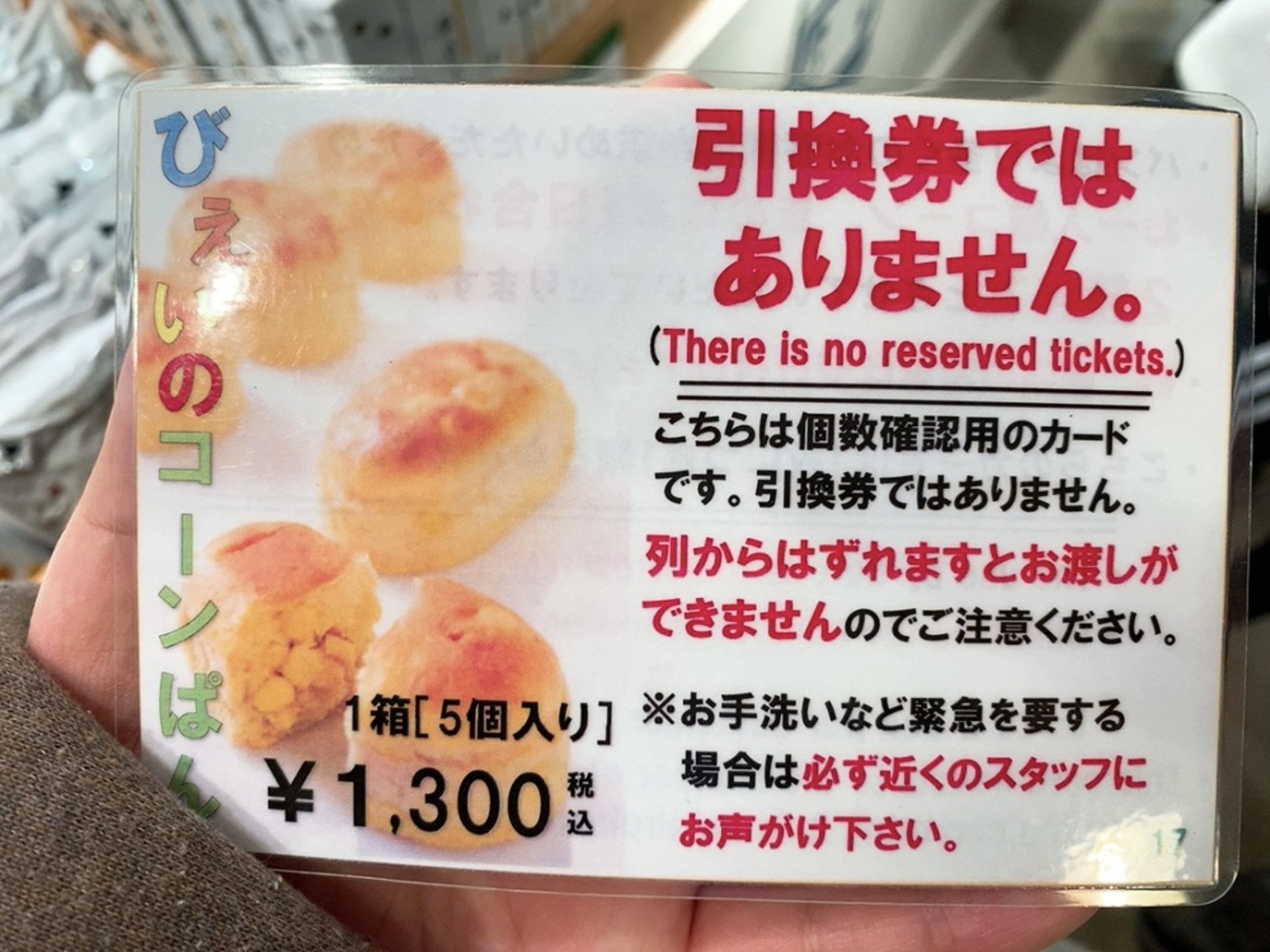 びえいのコーンぱんは本当に有名で、並ばないと買えない事もガイドブックにも書いてありますが、このお店に関しては本当に旅行計画の一部として組み込んでおかないと偶然買えちゃうなんてことは殆どなさそう!