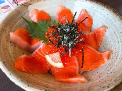 今回、私が注文したのは、福井サーモン丼です。 季節関係なく、楽しむことが出来るサーモン丼、本当に美味しくて感動でした!- 旅行時期