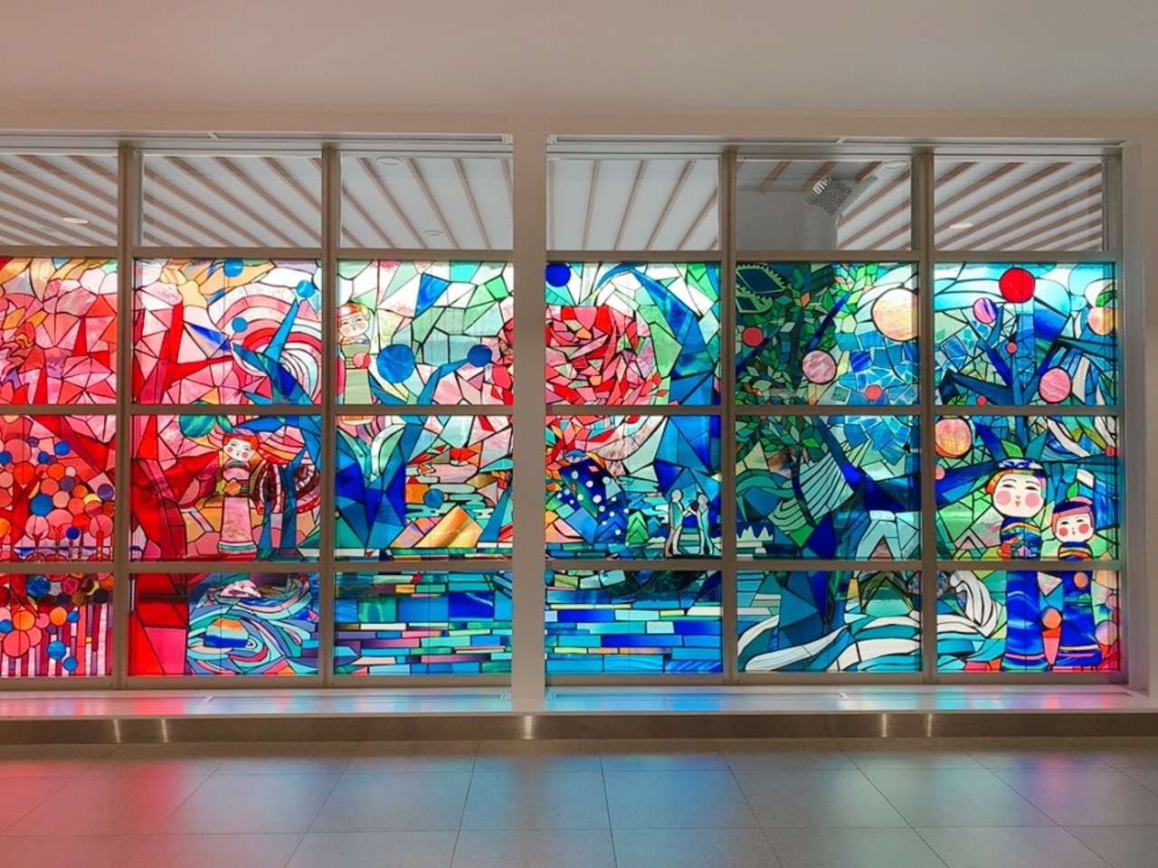 1Fの入口近くにある赤と青のステンドグラスがなかなかキレイでした!- 旅行時期