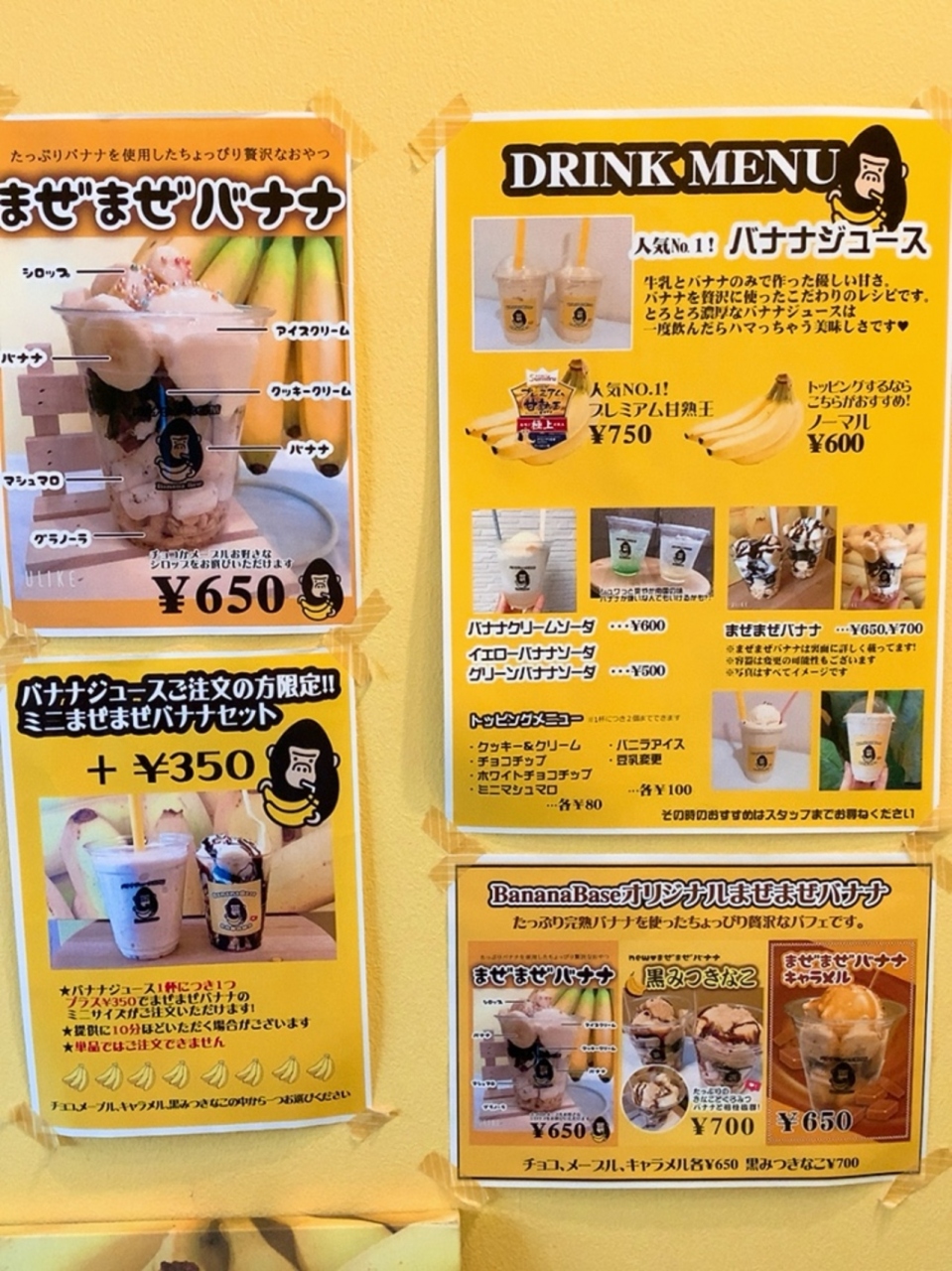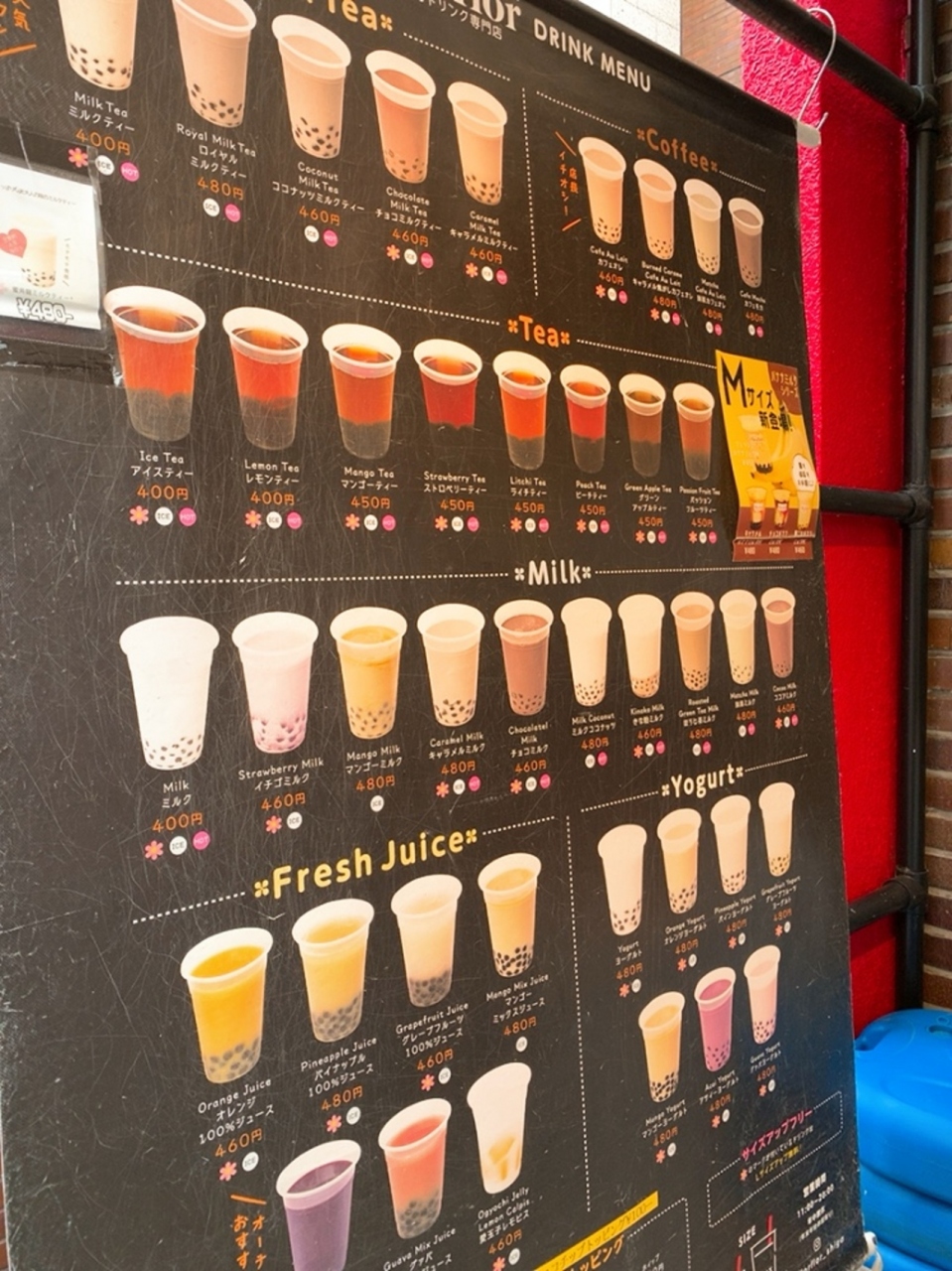 タピオカミルクティーのメニューが色々! バナナジュースも美味しかった!
