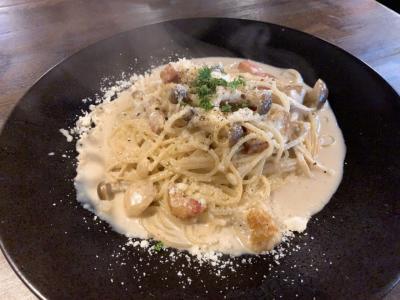 ポルチーニ茸ときのこのクリームソースを注文しました。 麺は細めで具沢山でなかなか美味しいパスタでした! 他にも色々なパスタがあり、注文する前にかなり迷ってしまったので、次回はトマトソース系やミートソースのパスタも食べてみたいな!と思いました。 グラタンもちょっと気になっています。