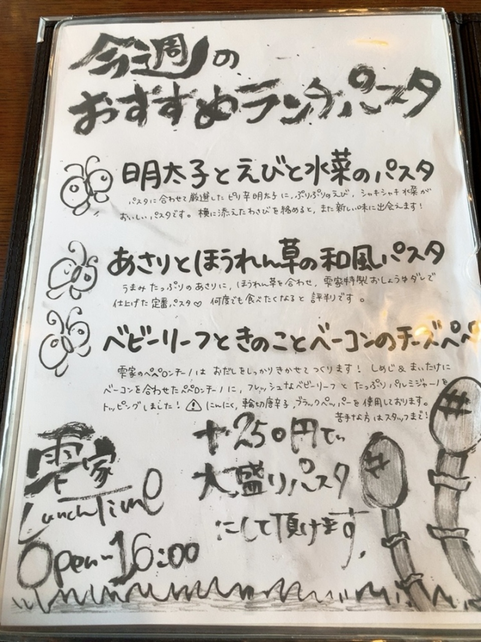凛styleチェーンのパスタ屋さんの1つで、今までにも南草津や水口の"ひより"はお気に入りのお店なので何度も行った事がありますが、雫家は今回が初めてでした。