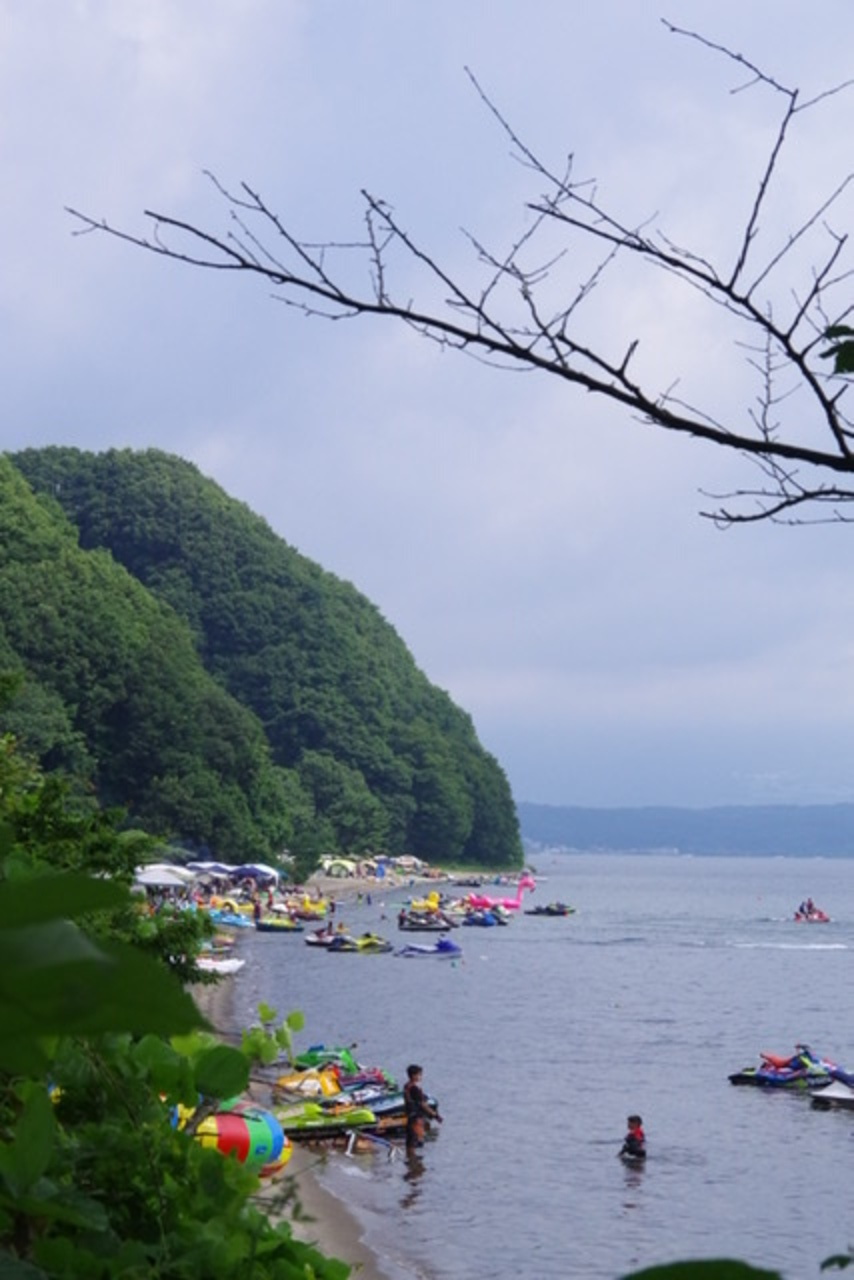 福島を旅行した際、初めて猪苗代湖を訪れて、湖岸沿いをレンタカードライブしました。 海の日の連休中で、快晴だったこともあり、こちらの中田浜湖水浴場は朝から賑わっていました。 プレジャーボートなどを楽しめるエリアだそうです。