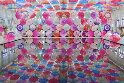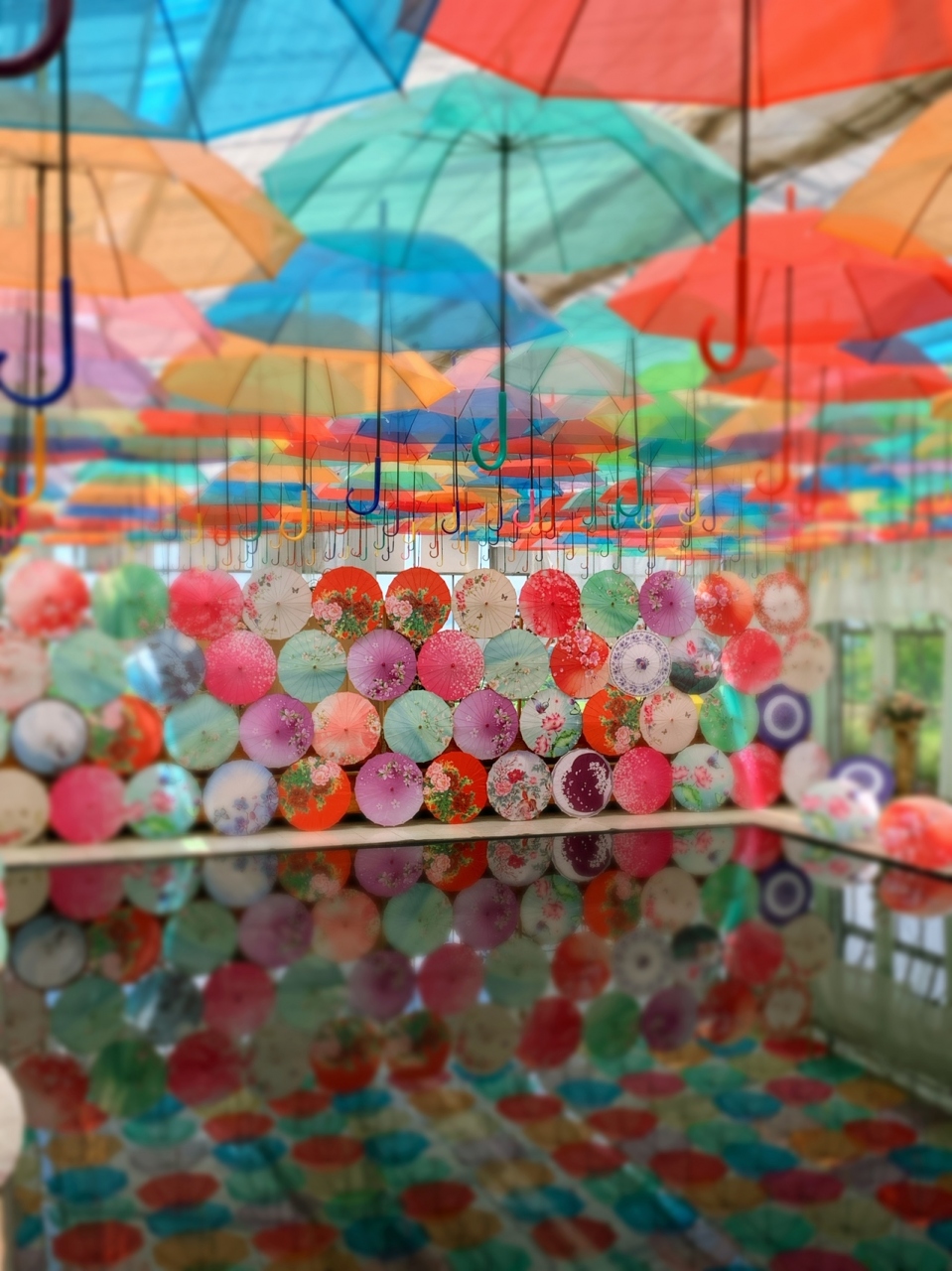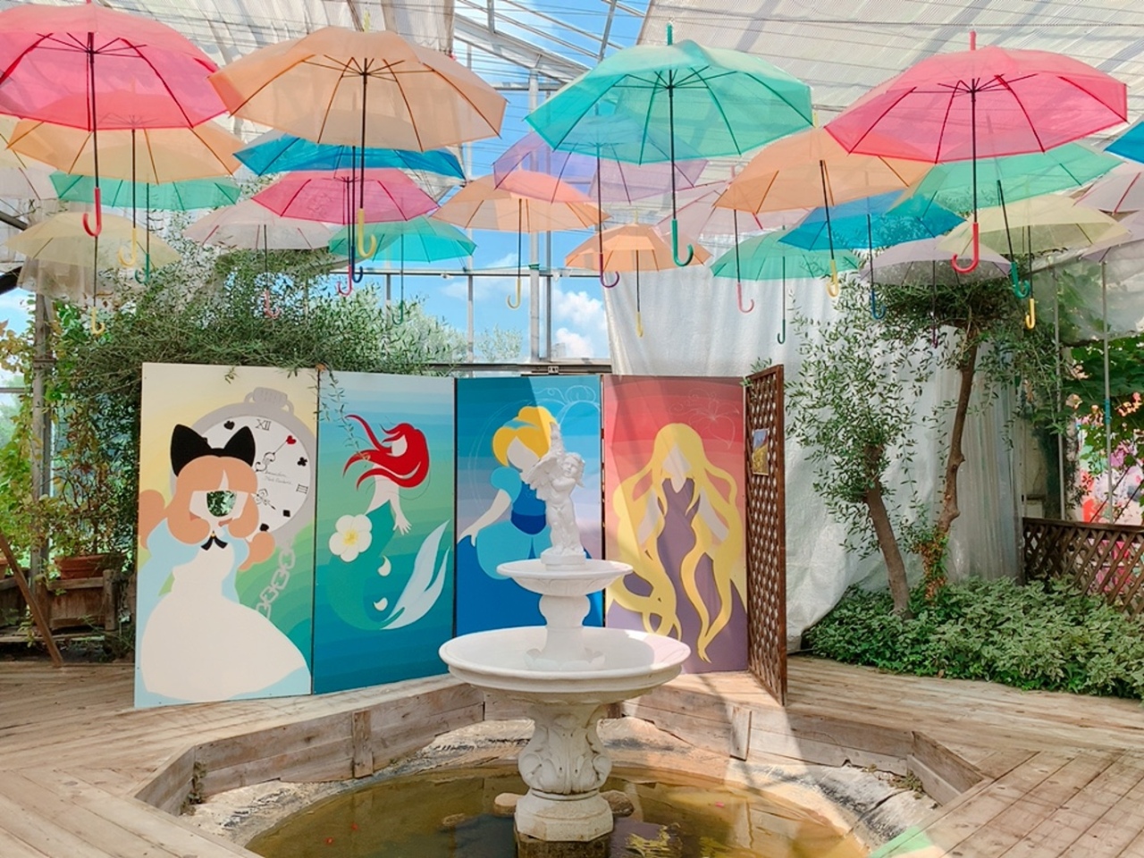 温室になっている屋内のハーブ園では、アンブレラスカイという展示があり、とってもキレイでした。 特別な照明が設置されているわけでは無いですが、明るめの撮影モードで撮ると、スマホのカメラでも十分キレイな写真が撮れますよ!