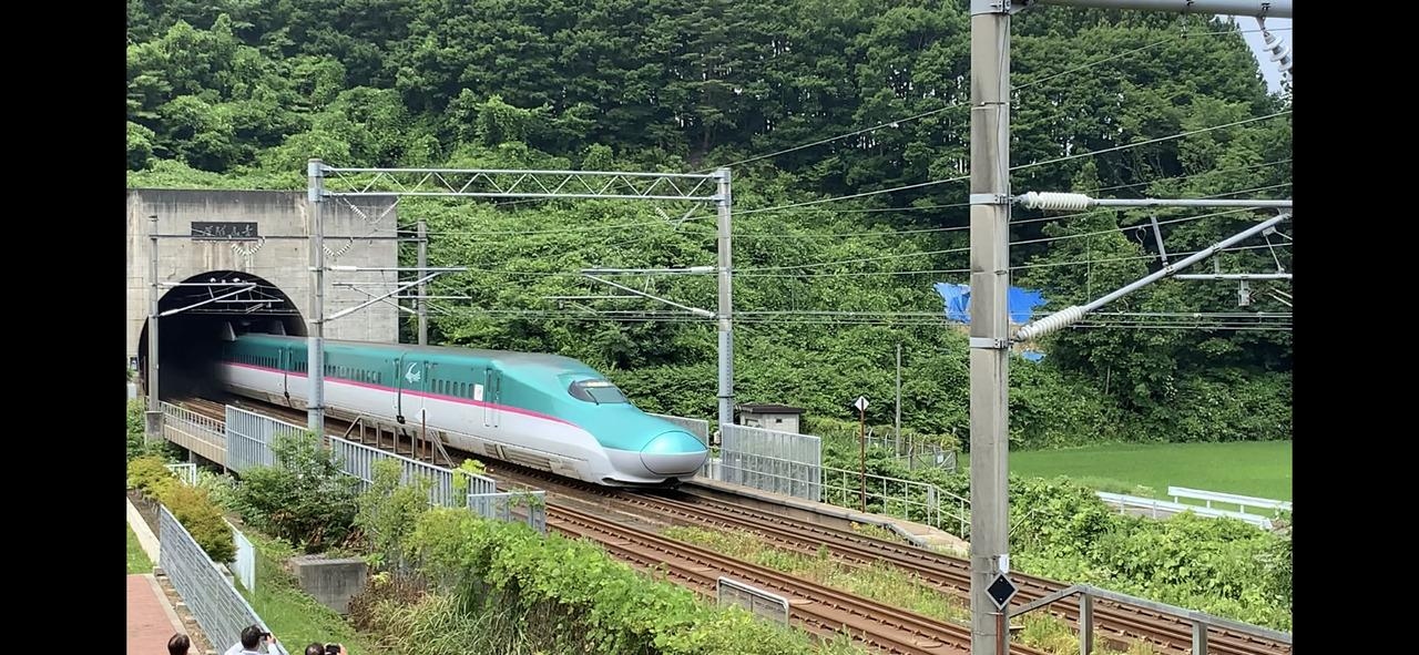 新幹線なので、もっと一瞬で通過しちゃうくらいのスピードを想像してたんですけど、この辺りではスピードを落としての走行なんですね。 動画を見返してみても、結構ゆっくりな感じだなーって思いました。
