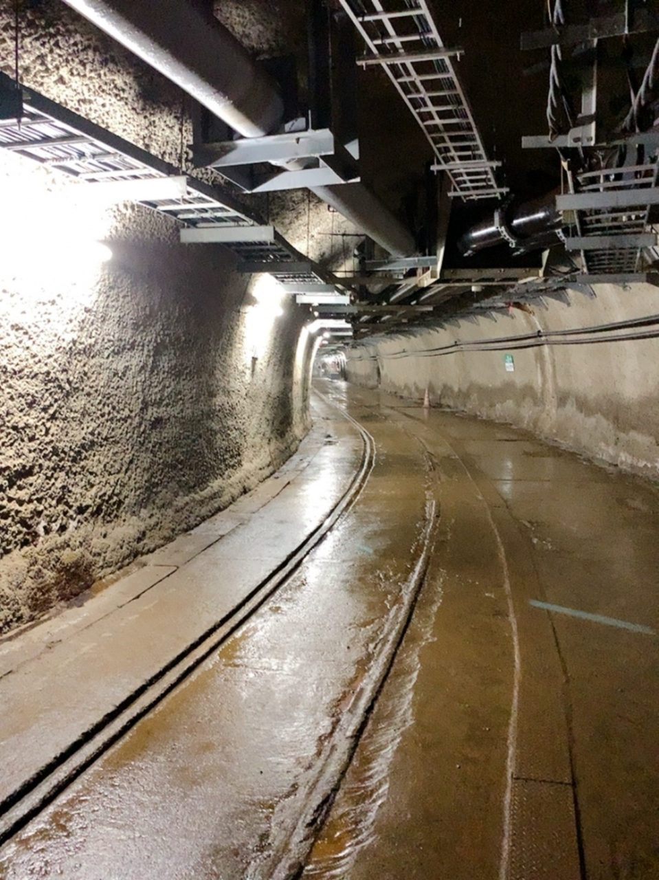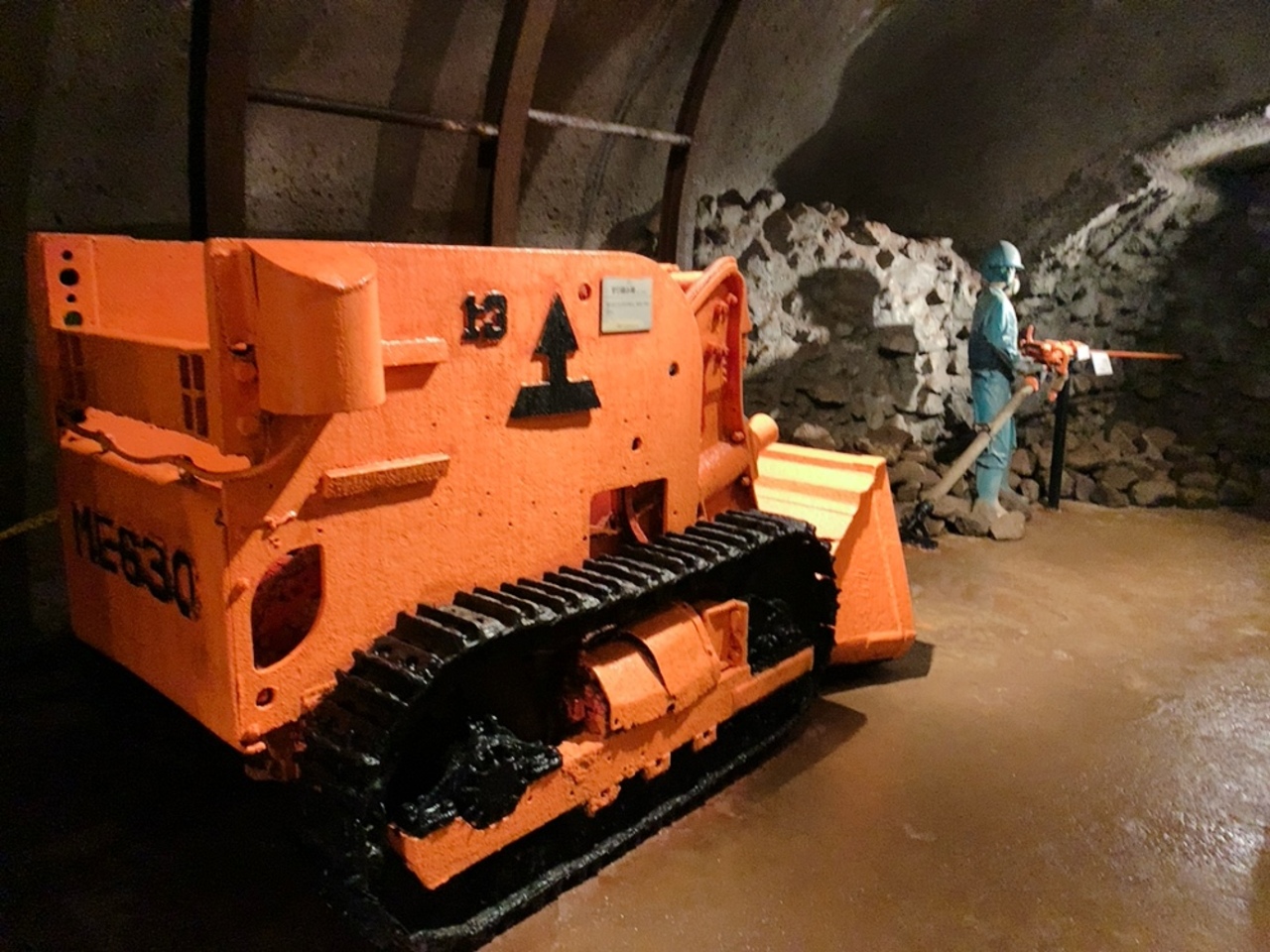 体験坑道ツアーは、まず最初は青函トンネル竜飛斜坑線 もぐら号に乗って海面下140mまで向かいます。 体験坑道駅に到着後は、案内係の誘導で、当時の色々な作業などの話を聞きながら、坑道を歩いて行きます。 体験坑道は、青函トンネルの工事が行われていた当時、実際に作業坑として使われていた場所の一角に展示エリアを作って、公開しています。 実際に掘削などの工事に使われた機械なども展示されています。 マネキンを使ってどのような作業に使われていたのかも表現しています。