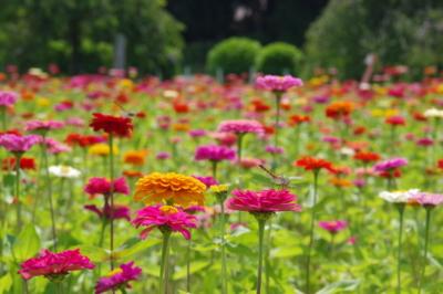 7月の海の日の連休中に訪れましたが、屋外もジニアというカラフルな花が咲いていてとってもキレイでした。 屋外では、季節ごとに様々な花を楽しむ事が出来そうです。