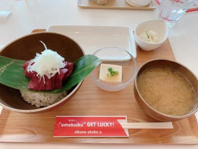 15分ほど待って案内していただき、さくらさく丼(モモ肉)を注文しました。 美味しい馬刺しの食べ方の案内がテーブルにあり、お醤油+にんにく辛子味噌はちょっとだけ試してみたけれど、私にはやっぱり辛すぎたので、醤油のみで頂きました。