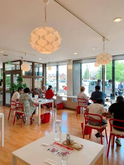 福島を旅行し、猪苗代湖を初めて訪れた時に、帰りにランチを食べる為に立ち寄りました。 海の日の連休中という事もあり、11時台にお店に到着しましたが、既に満席で入口に名前を書いてちょっと待ちました。 コロナ禍という事もあり、かなりテーブル席数を減らしての営業をされていました。