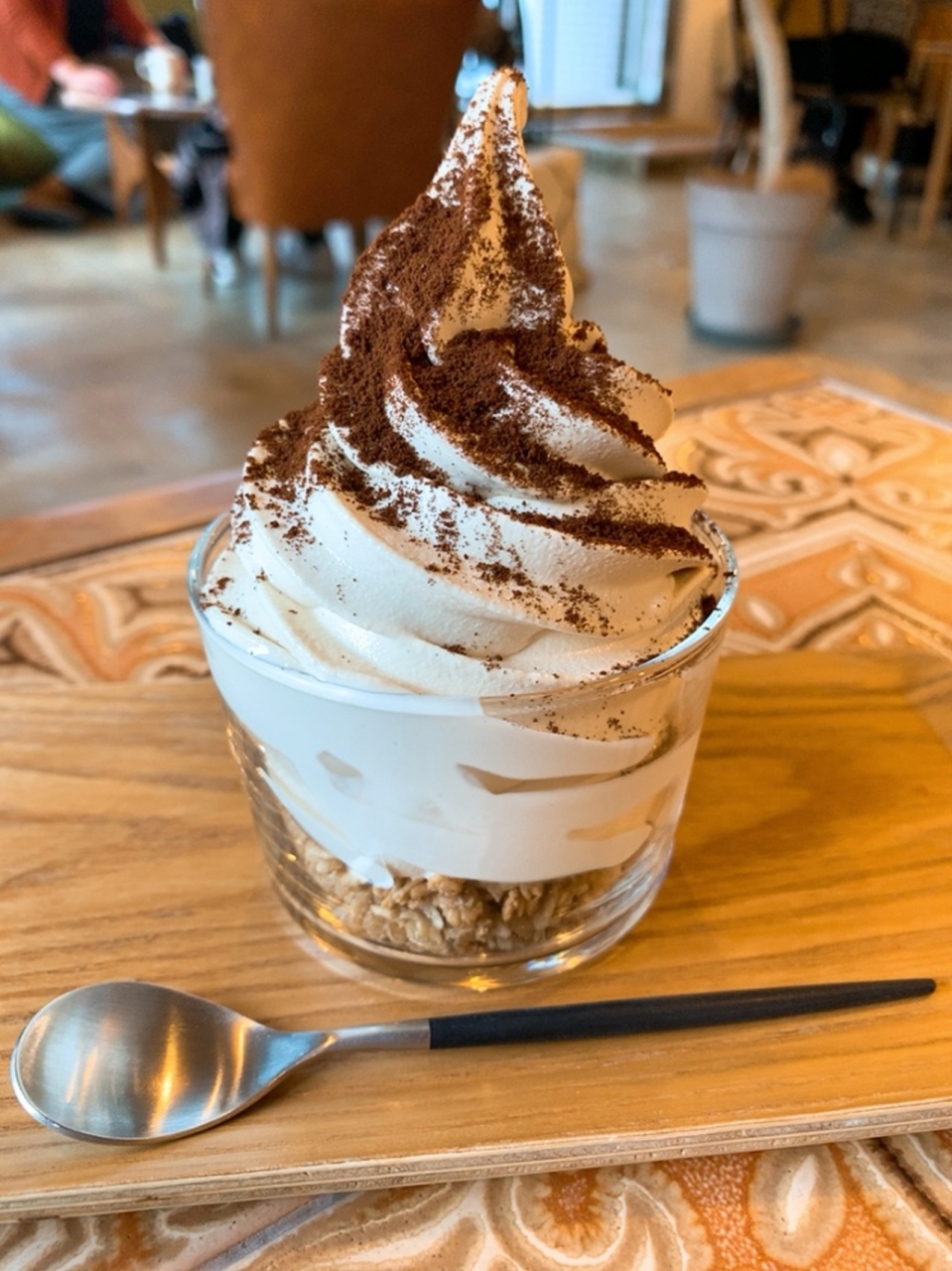 まろやかなコーヒー味のソフトクリームは絶品でした。 下に敷いてあったグラノーラがちょっとシナモン風味なのか、それととっても合ってました。- 旅行時期