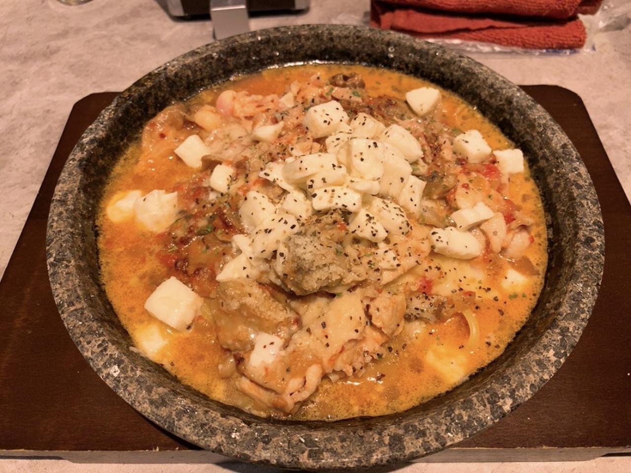 石焼生パスタが有名なお店で、トマトソース系、ホワイトソース系、オイル系、ペペロンチーノ系、和風など色々なベースソースに具が入ったパスタを選ぶことが出来ます。 デリバリーピザのようにソースだけ選んで、トッピングを足していくスタイルもあり、今回はトマトソースベースにモッツァレラチーズ、みつせ鶏、どっさりキノコを追加したオリジナルパスタをオーダー。 生パスタは最後までモチモチで美味しかったです。