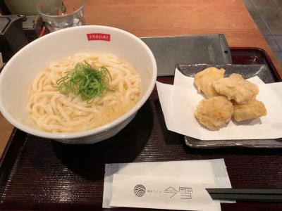 冷たいうどんを頼んで讃岐うどんの強いコシを楽しみたかったのですが、今回は真冬で寒かったのと、次の移動の予定も既に決まっていたので、温かいかけうどんを注文しました。 かしわ天付きのかけうどん、美味しく頂きました。
