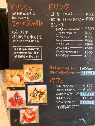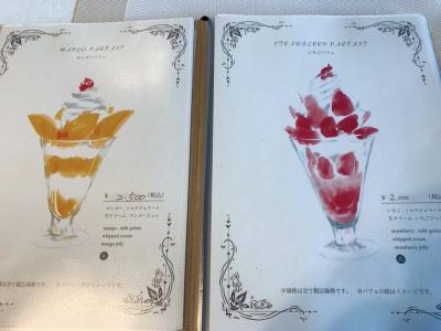 メニューも豊富で、マンゴー、いちご、バナナ、メロン、マロン…など色々とありました。 さすがに、メロンとマンゴーのパフェが1番高かったです。