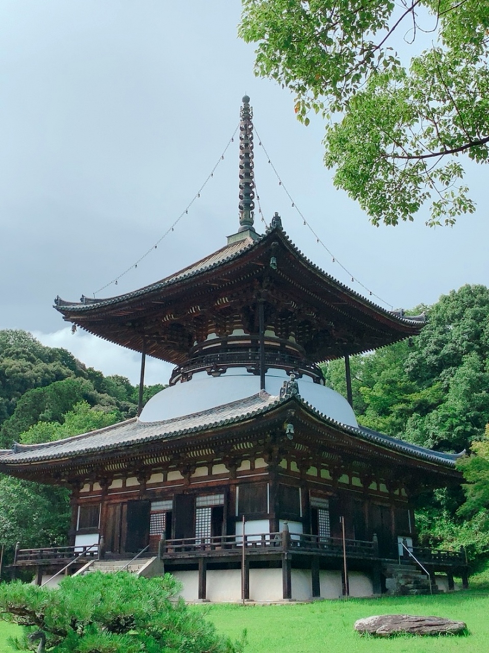根来寺の本堂で、1827年に再建された大伝法堂。 約200年前の建造物が今でもそのままの状態で見学できるって凄い! 大伝法堂の隣に建つ、国宝の大塔もとっても立派でした。 正式名称は、大毘廬遮那法界体性塔というそうです。 木造の大塔で日本で唯一、国宝指定の大塔内に入ってお参りができます。