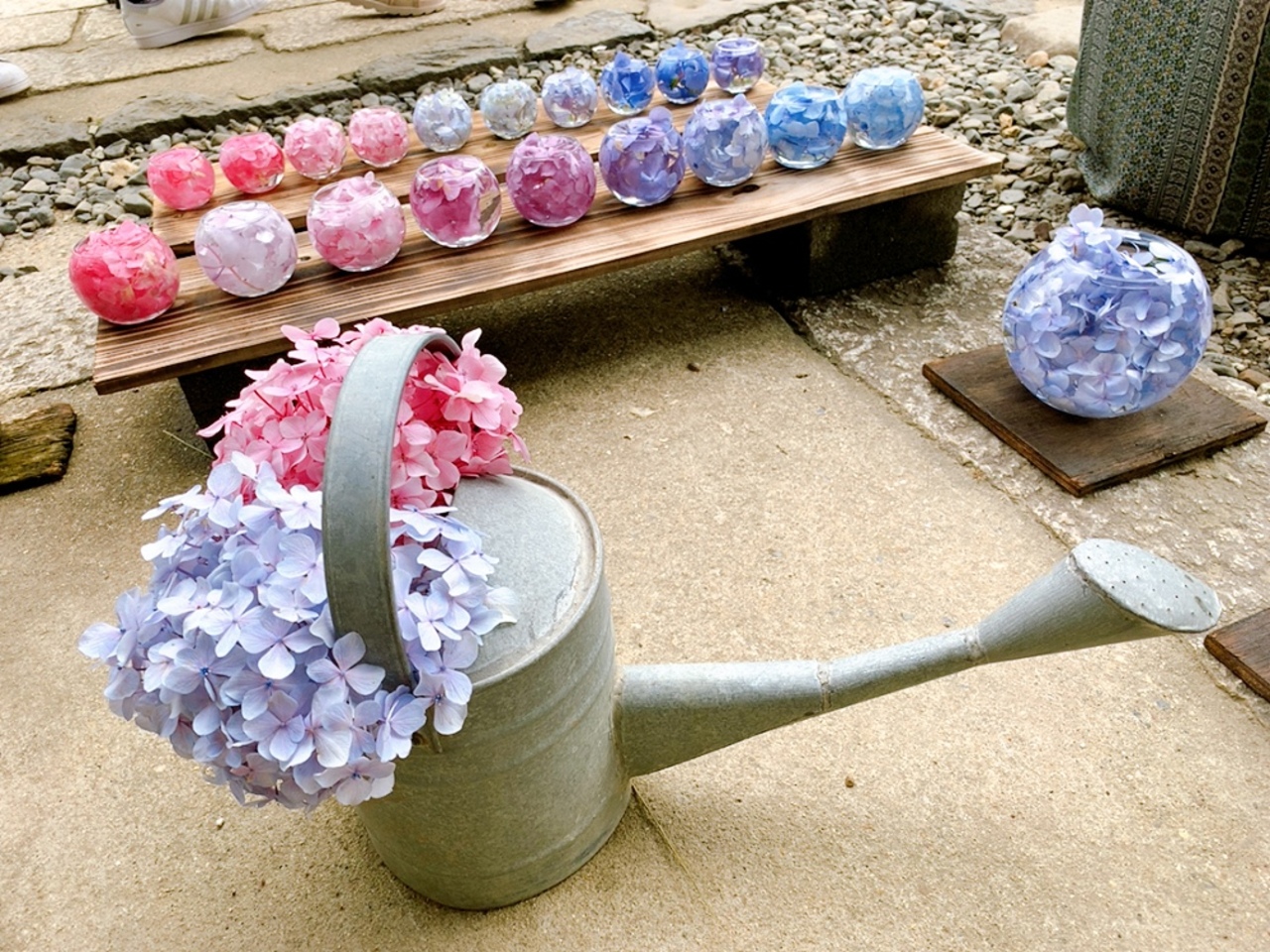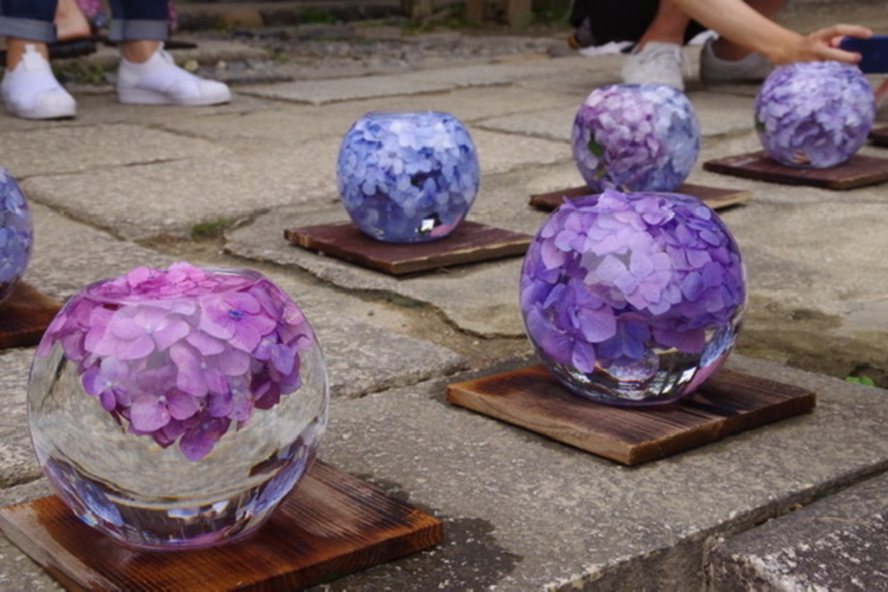 紫陽花のガラスボールがとってもキレイでSNS映えするお寺でした!