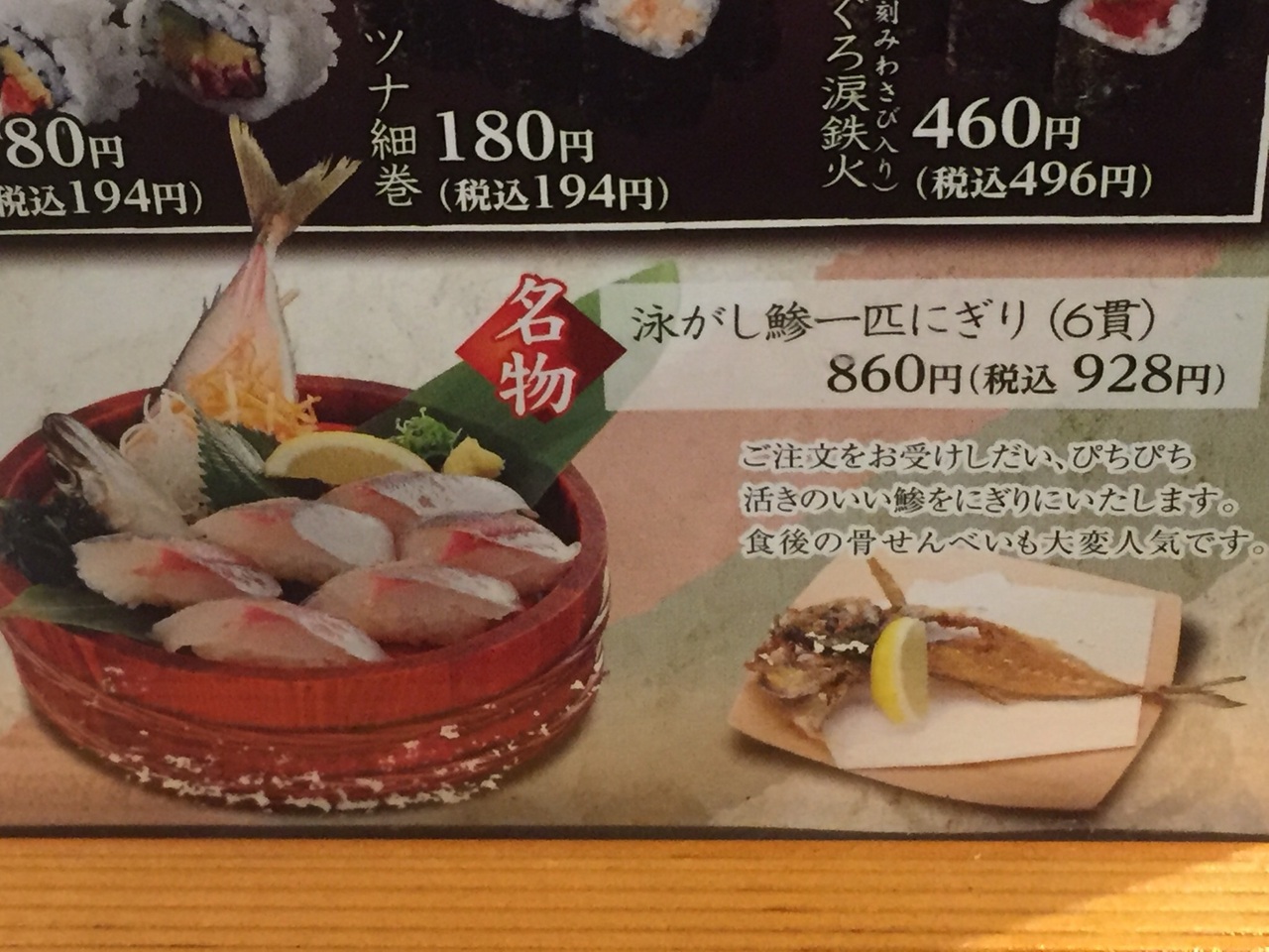 店内の生簀で泳いでる鯵を捕まえてその場で活き造りにしてくれるお刺身、にぎりもあって楽しいです(高いので頼んだ事ナイですが、いつか食べてみたいです)。