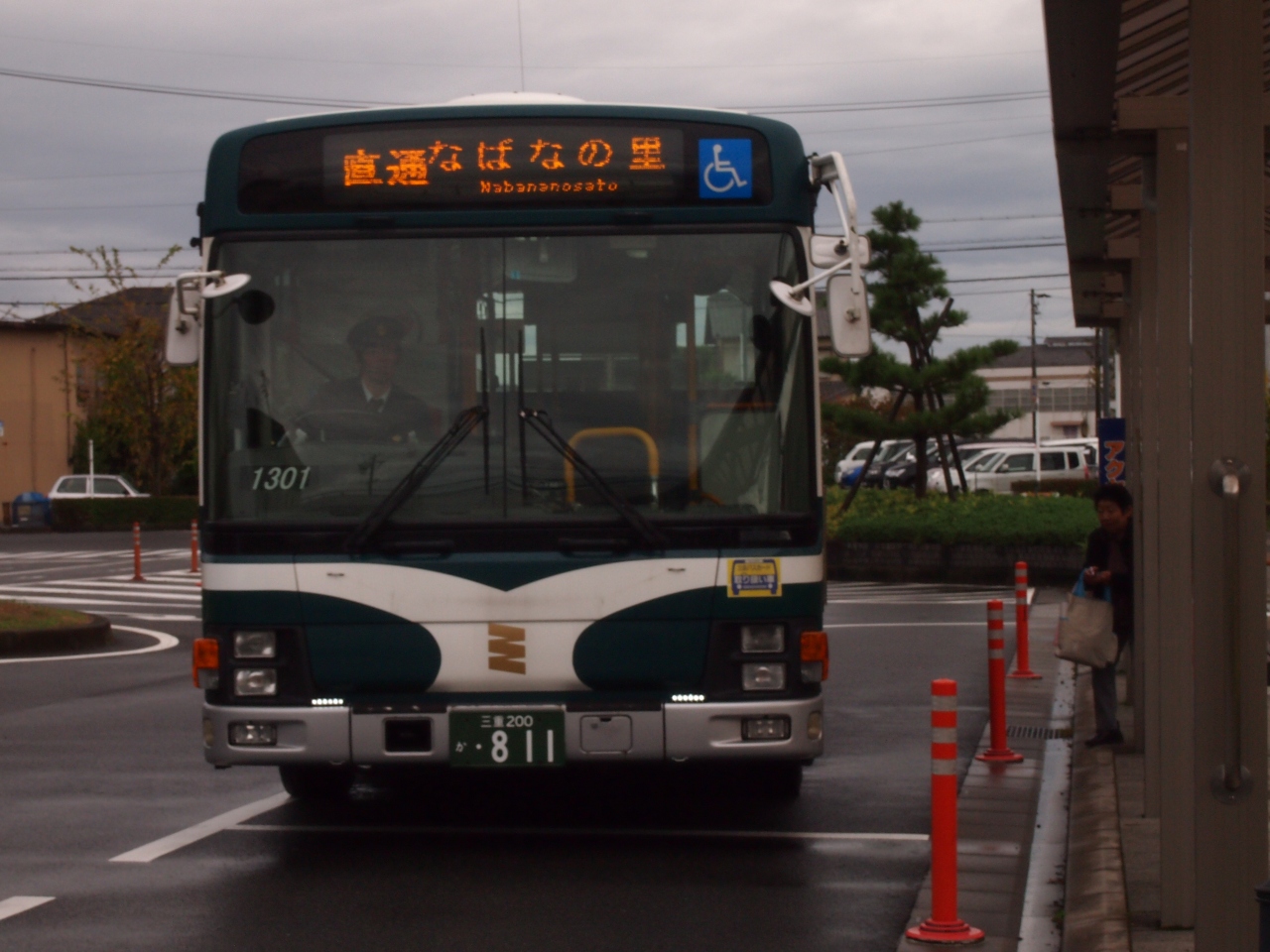 駅の目の前のバス停から、なばなの里行きの直通バスが運行されています。 通常の時期は、桑名駅からバスが出ているらしいですが、イルミネーションの時期は近鉄長島駅からのバスになりますのでお間違いなく! 15分ほどでなばなの里に到着します。