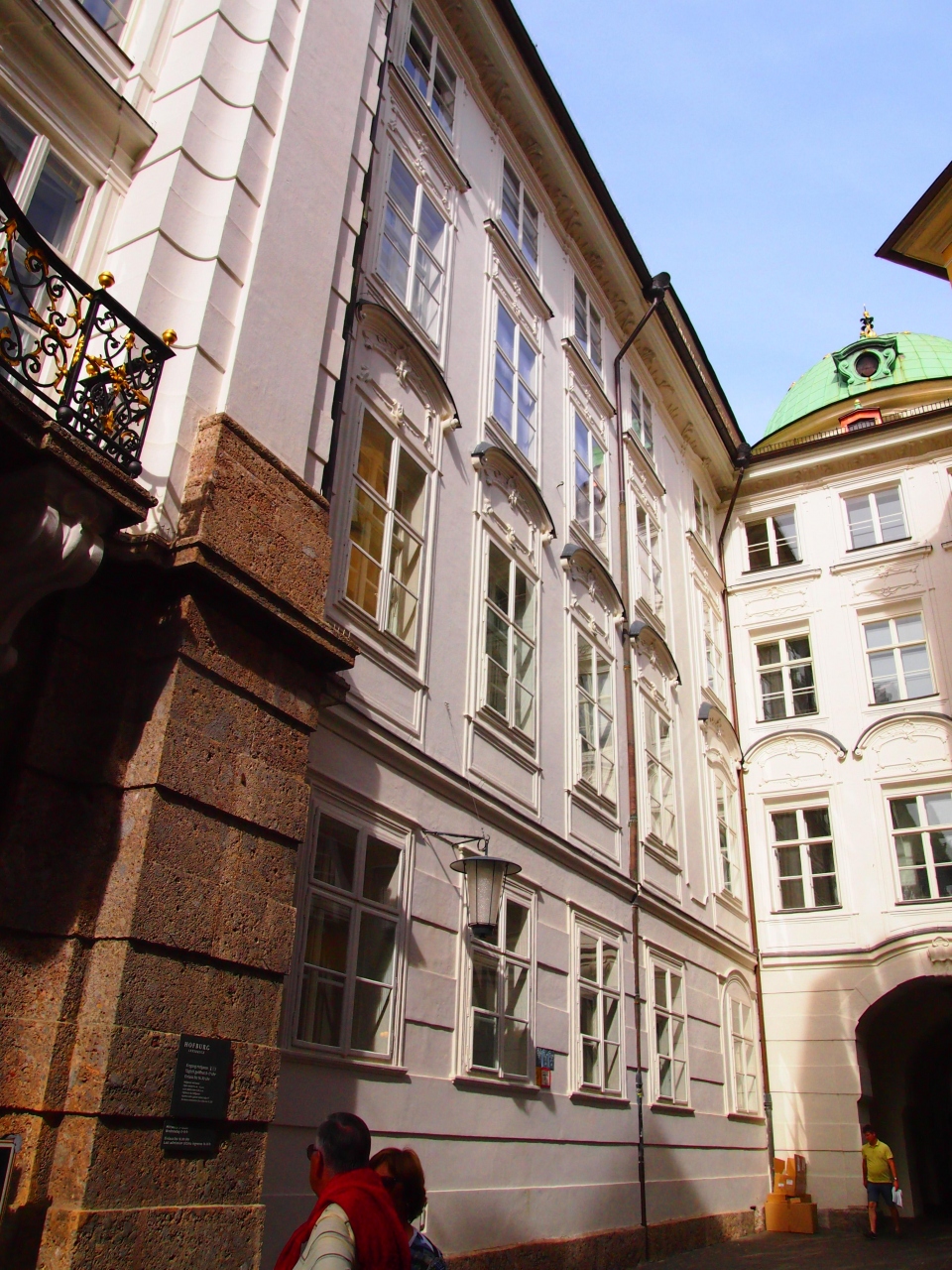 もとは、1420年にフリードリヒ2世の住居として建てられたようですが、1500年にマクシミリアン1世が広場で行われるイベントを見学するための桟敷席を付け加えてこんな形の建物になったようですね。 でも、屋根に貼ったら、マクシミリアン1世には金箔は見えてないよね^^; そういう問題じゃないのかな?