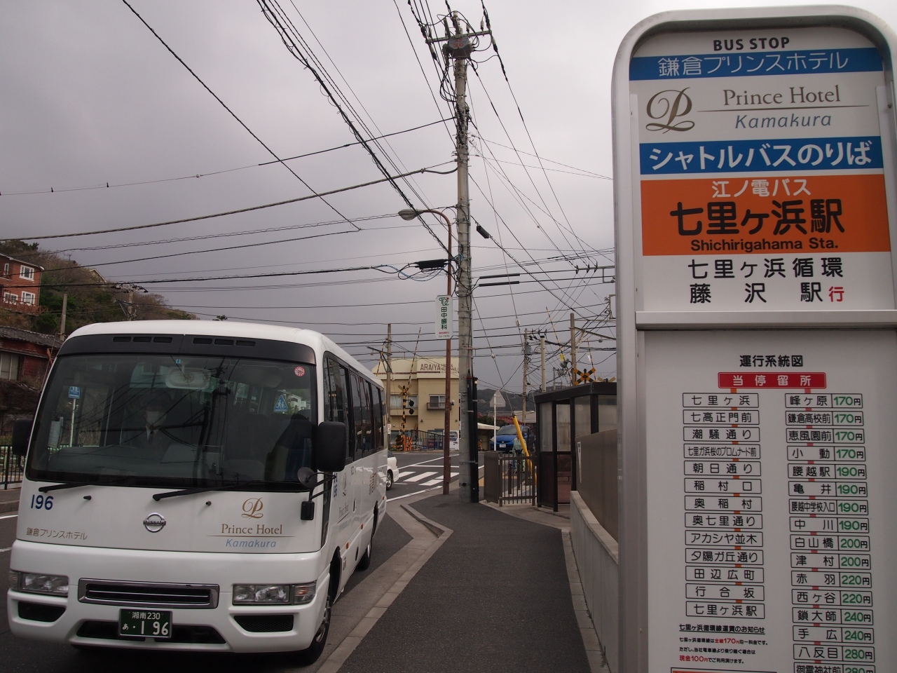 - 七里ヶ浜駅から徒歩10分くらい。 シャトルバスの運行もあります