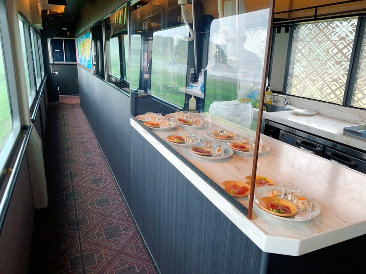 TOHOKU EMOTIONは、2011年に発生した東日本大震災からの復興と地域の活性化を目的に、JR東日本が運行を開始した観光列車です。 JR東日本びゅうツーリズム&セールスというサイト経由でしか予約が出来なくて、しかも2名以上じゃないと手配は出来ないので、一人旅には厳しい。 誰かお友達とかを誘うにしても、東京のお友達を誘う場合だと現地集合になっちゃうし、なかなか予定が合わずなかなか実現できませんでしたが、今回、海の日の連休に初めて乗ることが出来ました。 青森の八戸と岩手の久慈を結んでいますが、往路区間(久慈行き)は、ランチコースの提供、復路区間(八戸行き)はデザート&アフタヌーンティーの提供です。